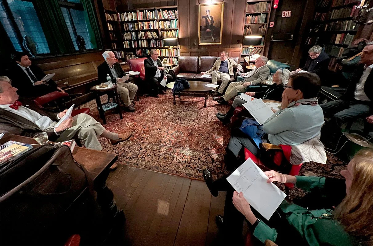 This years annual business meeting experienced delays and was slightly abbreviated because of an unannounced Democrat party fundraiser featuring President Biden and James Taylor in the near by theater district. In addition there was a substantial protest against the war in Gaza in the same neighborhood. On our walk to from the parking lot, we were greeted by chants of, “Hey, Hey, Ho, Ho, Genocide Joe, has to go”. Long story short it was a mess getting to the Tavern Club this year, it took Julie and myself 20 minutes to travel the final 3/10 of a mile.