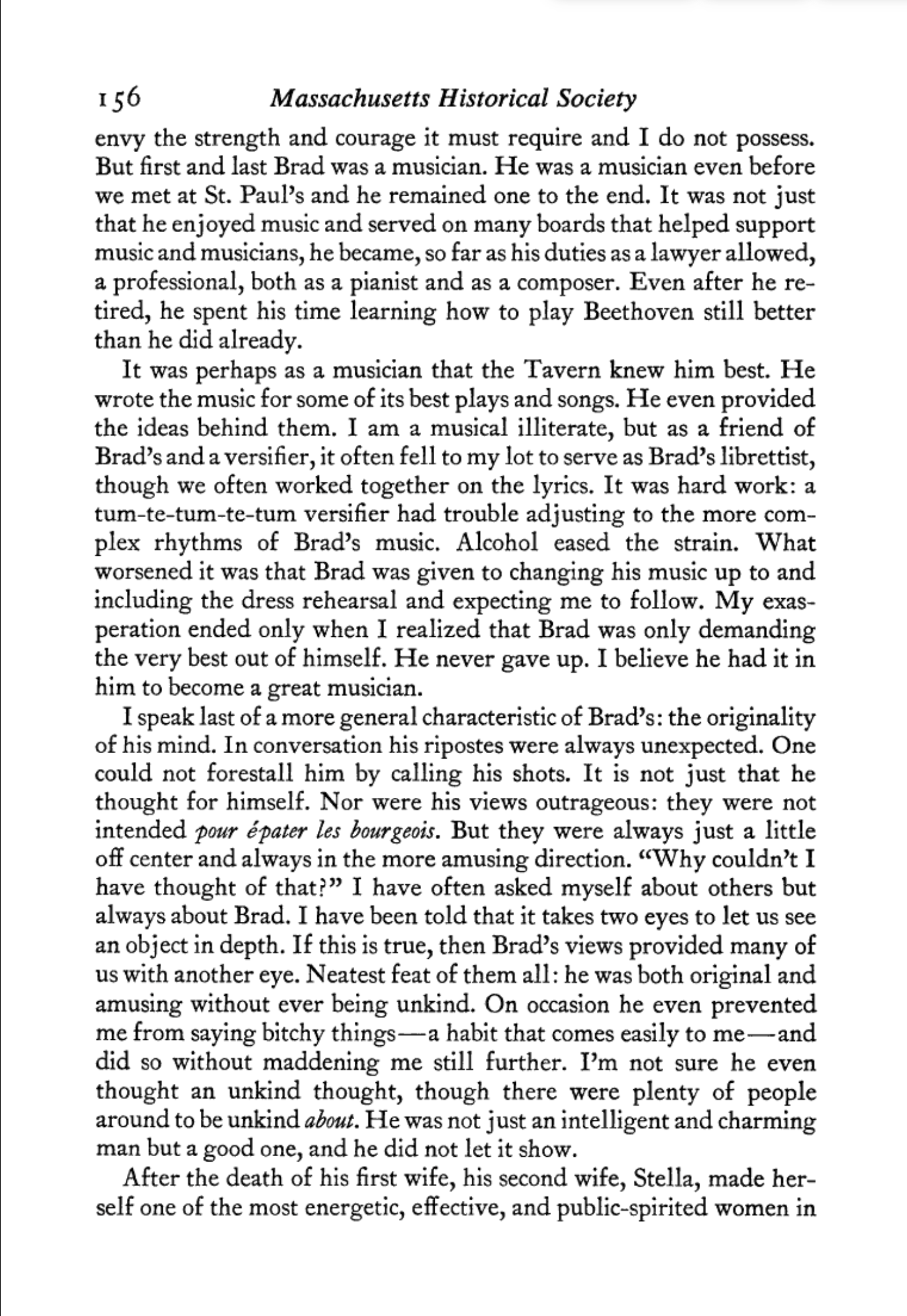 G. Homans tribute to Brad Trafford May 1983 read at the Tavern Club, Boston